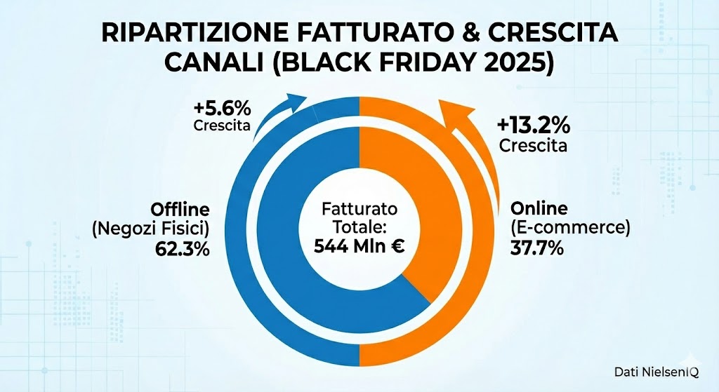 Il Black Friday 2025 si consegna agli archivi non come un semplice evento promozionale, ma come un indicatore fondamentale dello stato di salute dei consumi tecnologici in Italia. I dati rilasciati da NielsenIQ fotografano un mercato in decisa ripresa, capace di generare 544 milioni di euro in una sola settimana, con una variazione positiva dell’8,4% rispetto al 2024.